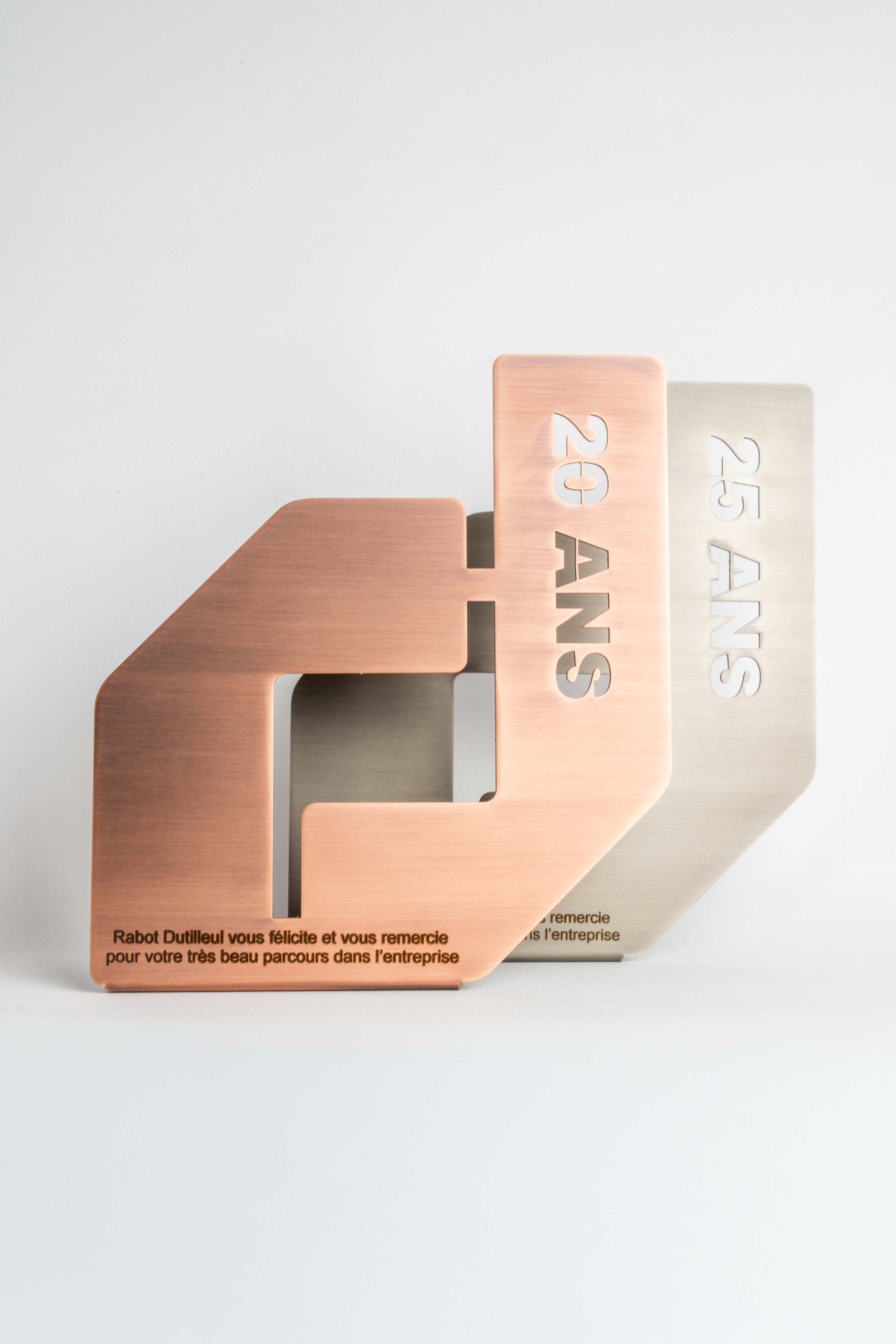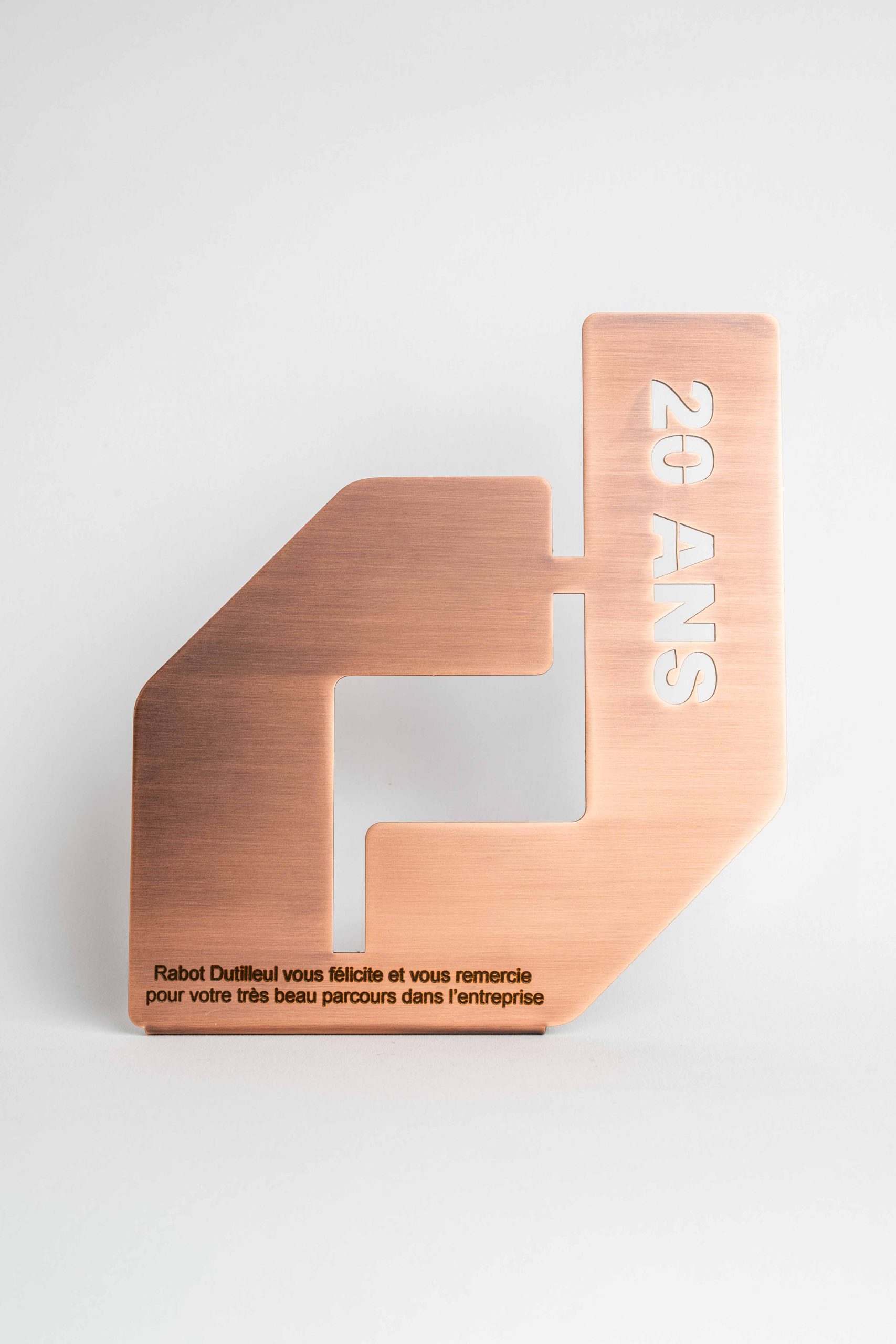 Trophée Médaille du Travail créé sur mesure pour Rabot Dutilleul, une distinction valorisant l’ancienneté et l’implication des collaborateurs dans les métiers de la construction