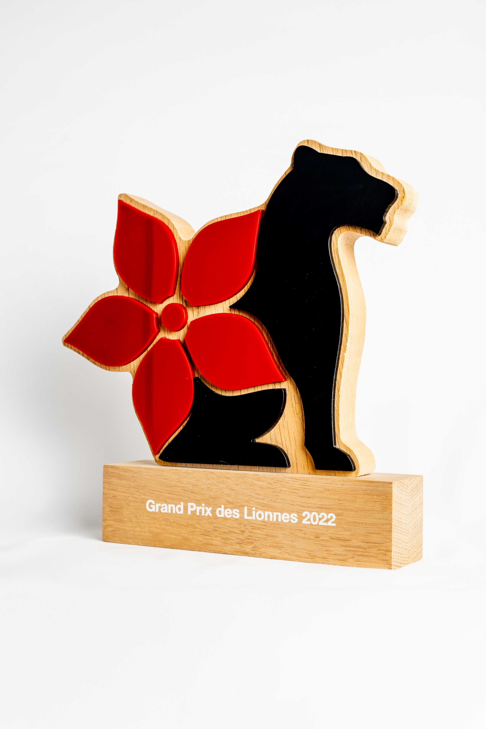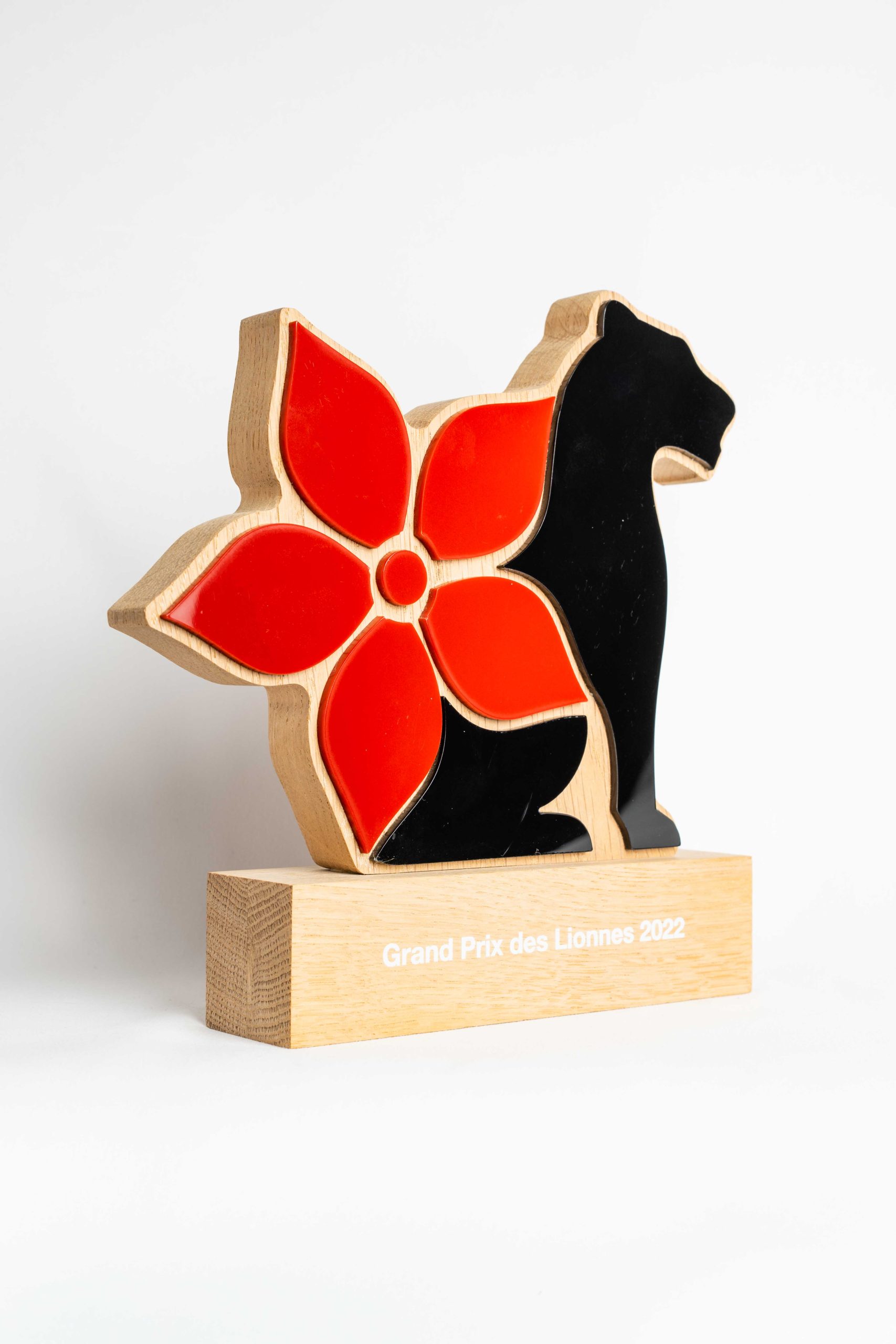 Trophées bi-matières bois et plexiglas teintés dans la masse