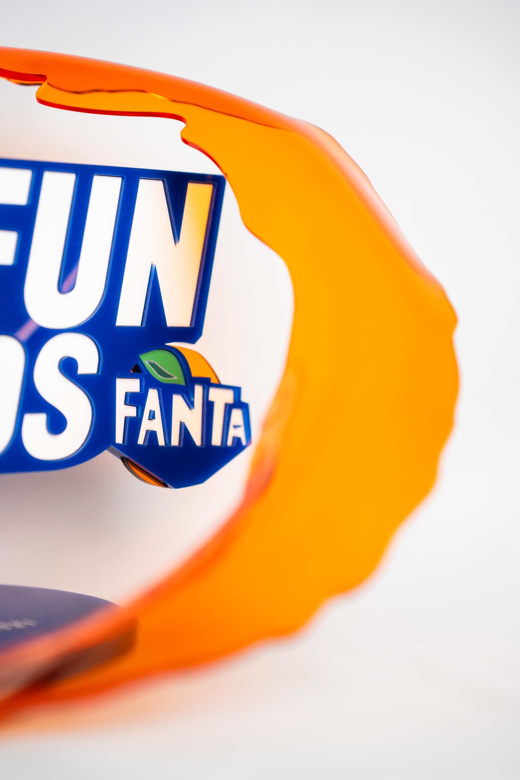 Trophée Influence en plexiglas sur mesure, créé pour les Fanta Fun Awards, une célébration haute en couleur où le design rencontre l’énergie du fun