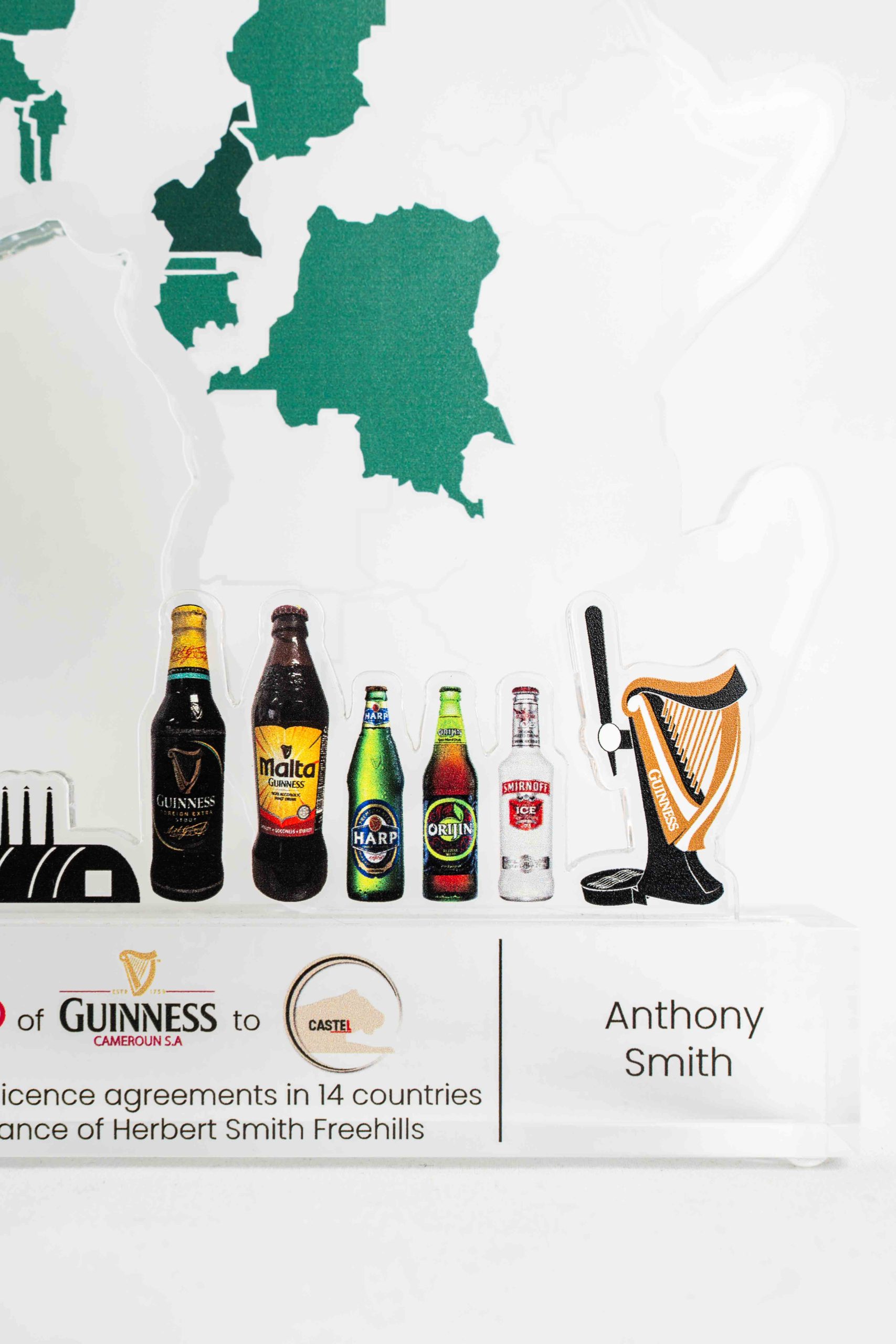 Trophée Tombstone réalisé sur mesure pour Diageo, groupe international de référence, afin de célébrer un moment clé de son développement